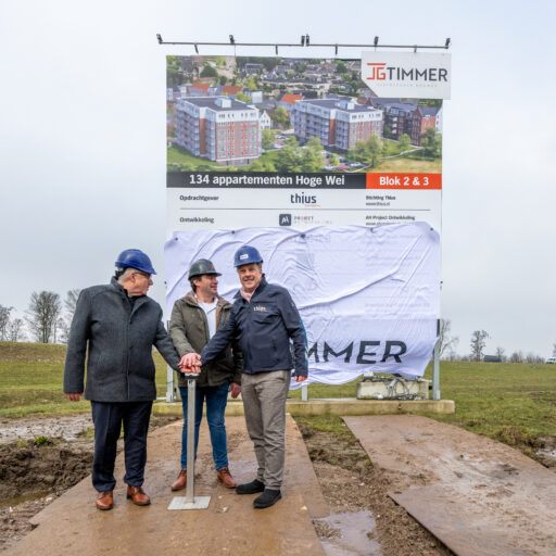Met het boren van de eerste paal is de bouw van het Veilingkwartier in Tiel officieel gestart. In deze nieuwe wijk realiseert Thius 110 sociale huurwoningen: 89 appartementen en 21 eengezinswoningen. Houdt de website van thius in de gaten voor meer info.